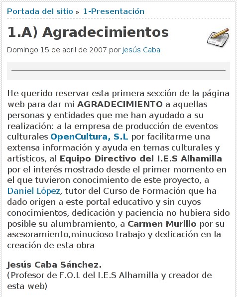 Por cierto, en dicha página se me agradeció la colaboración prestada, aunque ahora han cambiado de opinión y le dan el agradecimiento a otra persona. Resulta curioso, pero buscando en las entrañas de google: