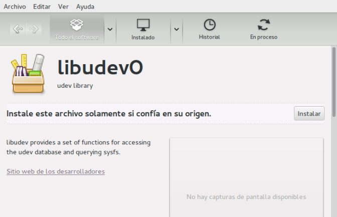 Obsevamos que necesita el paquete libudevO, que debemos descargar desde el siguiente enlace: