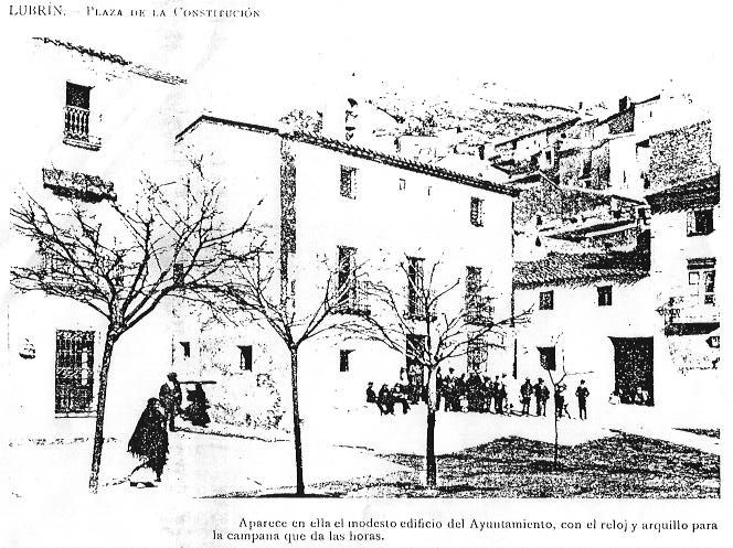 Como he comentado anteriormente es una foto del año 1909, es la plaza del pueblo y donde esta el grupo de hombres es el ayuntamiento.