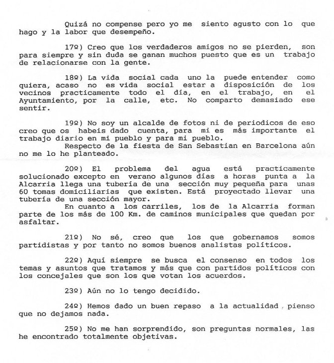 Creo que hoy merece la pena sacar a la luz estos datos .. saber lo que pensábamos entonces .. tener una ligera idea de lo que era la política municipal en aquellos tiempos .. en los que yo no sólo no ganaba dinero .. sino que perdía con la política (y el alcalde tampoco tenía un sueldo considerable .. como se puede leer en la entrevista).