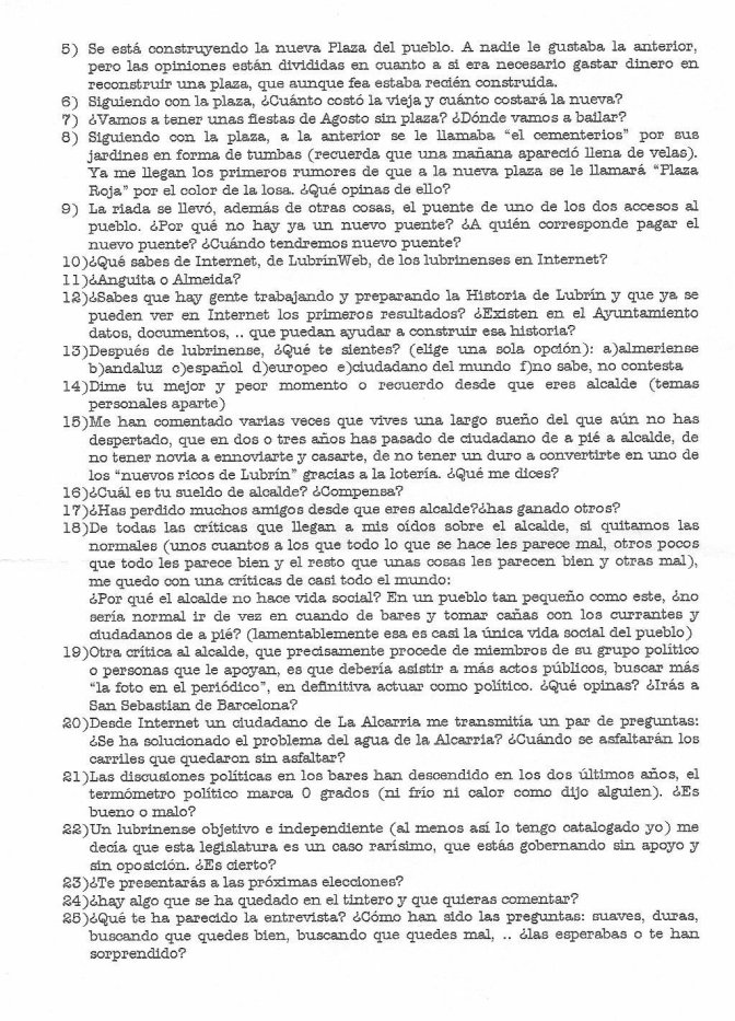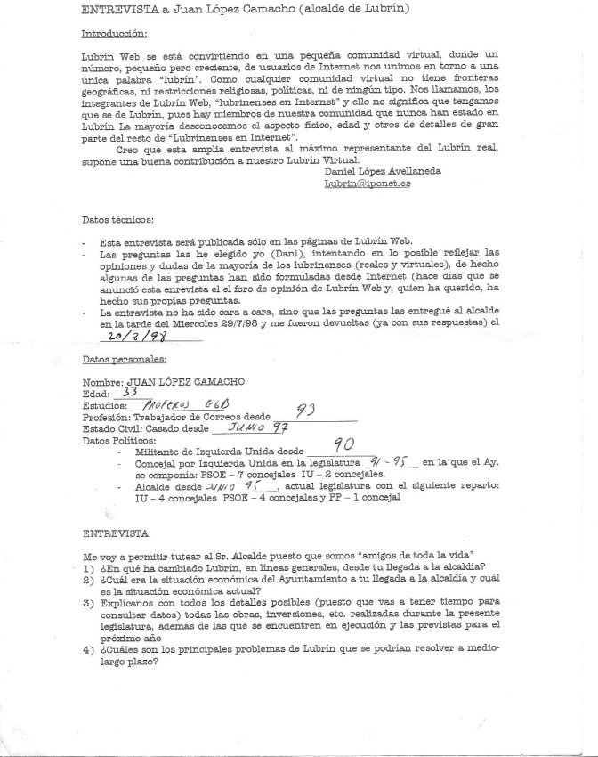 En aquellos tiempos .. en los que hice la entrevista .. yo era portavoz del grupo político que presidia el alcalde y que gobernaba el ayuntamiento de Lubrín.