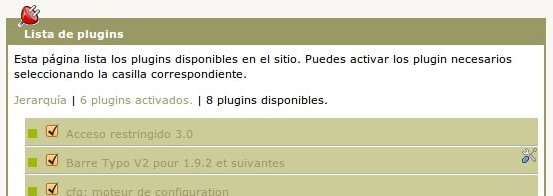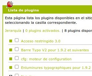 En el espacio privado, Configuración del Sitio , Gestión de los plugins