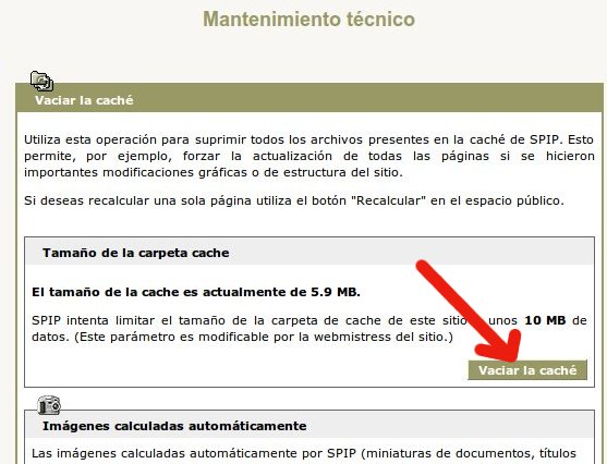 Dentro del espacio privado, Configuración del Sitio , Vaciar la Caché