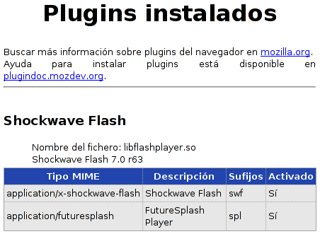 Ahora cuando tecleemos en nuestro navegador ’about:plugins’ nos aparecerá: