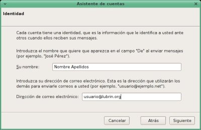 Tecleamos nombre y dirección de correo (usuario@lubrin.org)