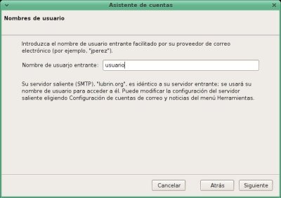 Aquí ponemos nuestro usuario (la dirección de correo sin ’@lubrin.org’)