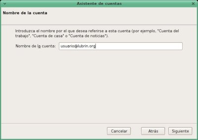 Como nombre de la cuenta deje la dirección de correo o ponga ’cuenta de lubrin’ o lo que quiera