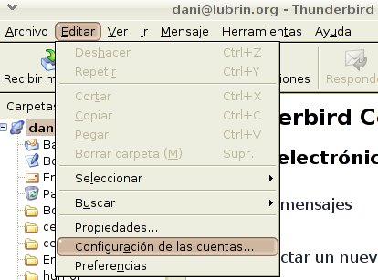 Si ya tiene instalado thunderbird, debe crear una nueva cuenta de correo, mediante el Menú Editar .. Configuración de las cuentas ..