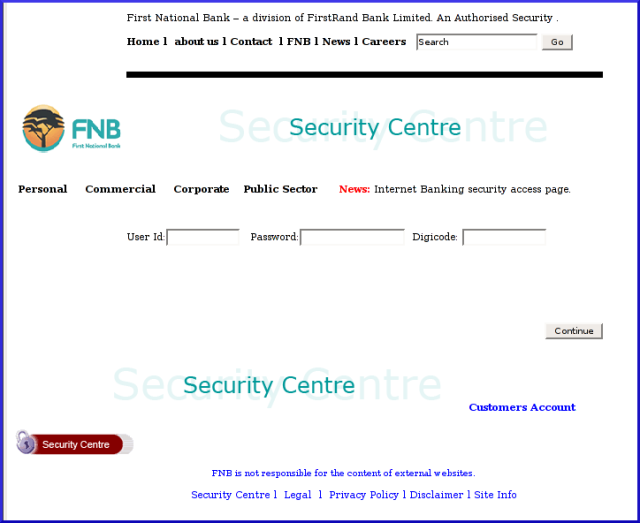Esta mañana (Viernes 2 de Febrero de 2007) recíbíamos en mi centro de trabajo (IES Mar Serena) una llamada telefónica procedente de Sudáfrica. Tras ponerse al aparato un compañero de inglés, toma unas notas en papel y me llaman urgentemente (aún estaba el compañero al teléfono) y me cuentan que hay un estafa bancaria en una de las páginas del servidor del instituto. Evidentemente no me creo nada .. pero empiezo a teclear la url que me pasan en papel: