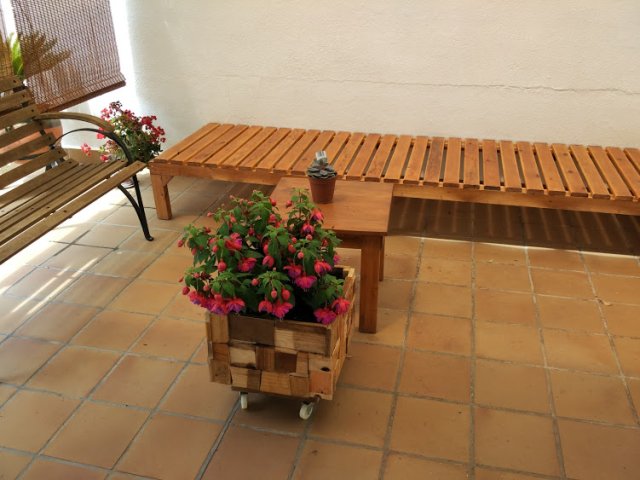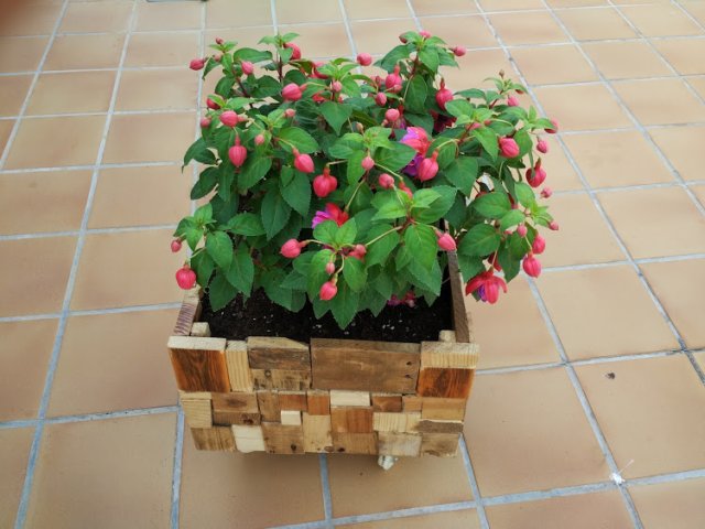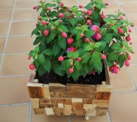Añadimos turba y alguna planta (en este caso es una fucsia o "pendientes de la reina")