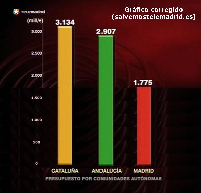 El primer gráfico hace que la columna de Madrid sea casi insignificante (reforzado por el comentario del presentador).