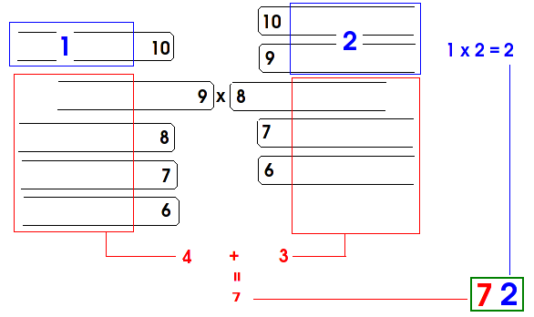 – Contamos los dedos que hay por encima, multiplicando los de cada mano, que son