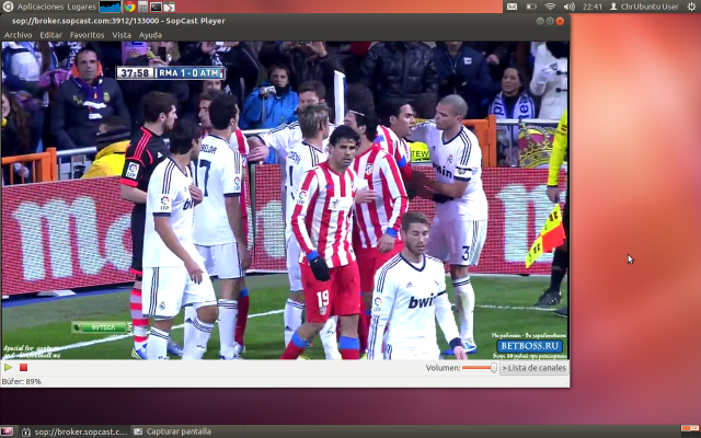 Buscamos algún enlace en las páginas de enlaces de sopcast (por ejemplo en livefootball.ws) y comprobamos cómo se ve.