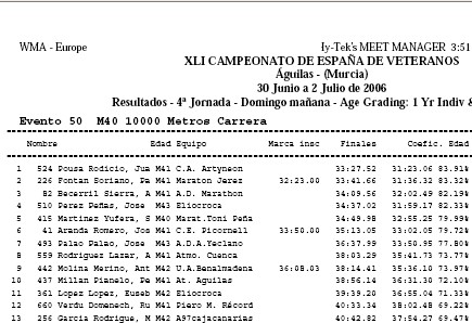 Como parte de su entrenamiento o quizás más por pura diversión, nuestro paisano Eusebio disputó el campeonato de España de veteranos quedando en un honroso onceavo lugar en los 10.000 metros y catorceavo de España en los 5.000
